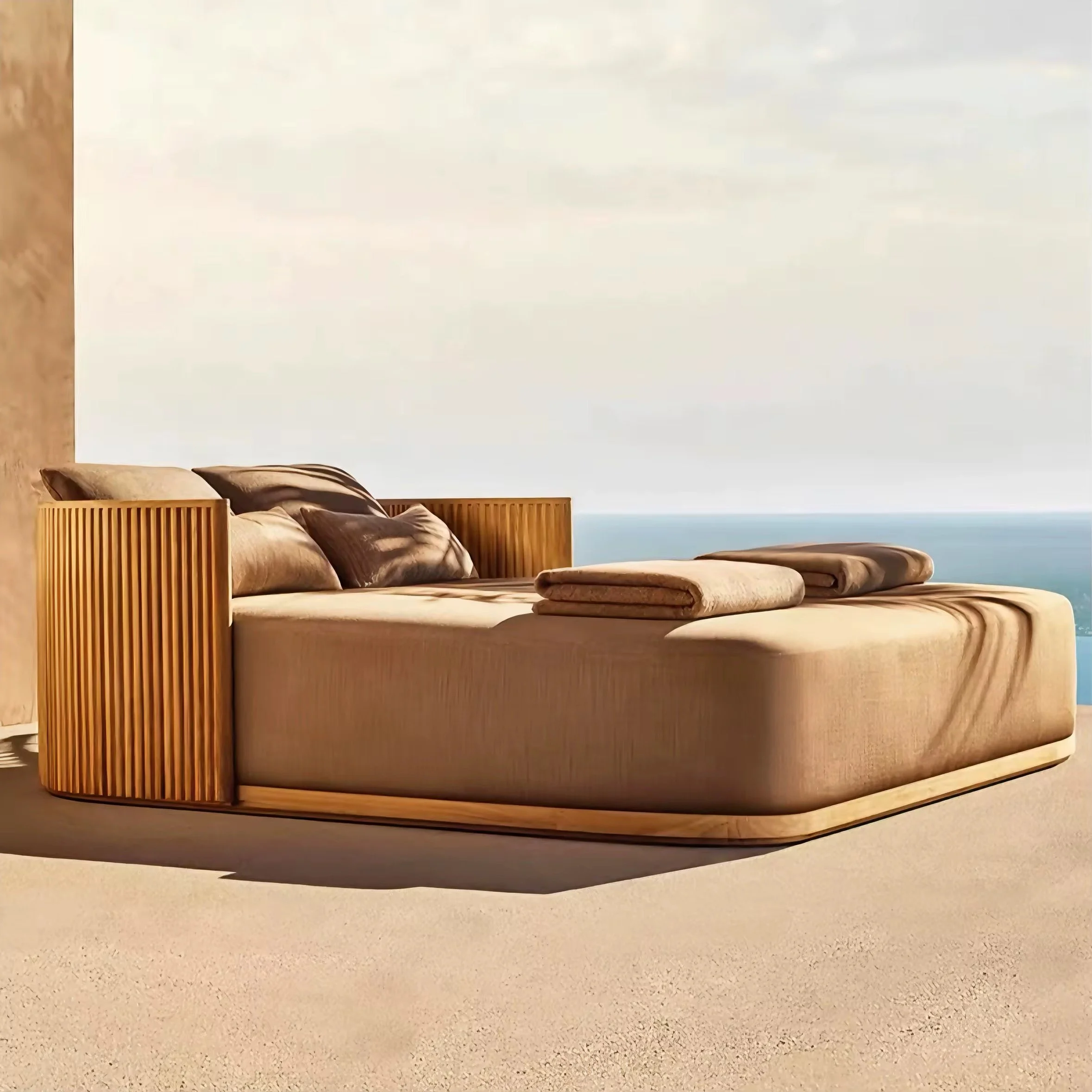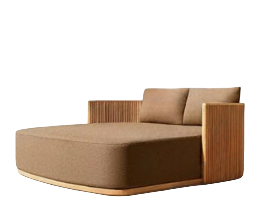 Designed for moments of pure rest, the Milos sun loungers combine generous proportions with refined detailing. The solid wood structure and soft upholstery create a sense of grounded comfort, inviting long, unhurried hours under the sun with the sea as a backdrop.